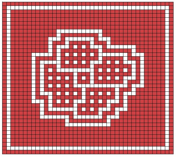 Сегодня, в отличие от предыдущей статьи, где был сделан акцент на узор рисунка, мне захотелось обратить внимание на фон и поработать с ним, как бы создавая разные, как говорят художники, текстуры. Для этого, сначала взяла небольшой элемент, который я уже использовала, в виде цветка, поместила его в центр схемы, а фон сделала полностью «закрашенным», как при «гобеленовой» технике для мозаичного вязания, отделив от рисунка на некоторое расстояние и закончив рисунок двойной рамкой. Потом сделала схему, где фон рисунка составлен полностью в «вафельной» технике, а в следующей, та же «вафля», но уже с инверсией цвета. Дальше сочетала уже в одной схеме по углам «вафельную заливку» с элементом линия, линии располагала, как по вертикали, так и по горизонтали. Получилось девять схем, они все рабочие, просто чтобы не делать каждый по отдельности, соединила их на одном листе. И ещё, сделала такую композицию из трёх цветков, развернув их в разном направлении. Все схемы составлены для мозаичного