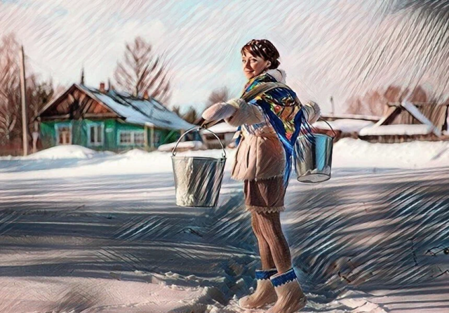 ...Прошлой зимой, приехал Николай в родную деревню, навестить свою матушку. В последнее время она часто болела. Мать пирог испекла к приезду сына, наливочку достала. Просидели они за разговорами до самого вечера. Мать прилегла на диванчик отдохнуть, а Николай решил пройтись по деревне. Вышел Николай из ибы, стоит у калитки, размышляет, в какую сторону пойти. Вот тут то он и увидел эту девушку. Незнакомка несла на коромысле ведра с водой, из единственного деревенского колодца. На улице подморозило и было скользко. Николай подошёл к ней, чтобы предложить свою помощь, а заодно и познакомиться, так как раньше он ее никогда не видел в своей деревне. Девушка обернулась на голос Николая, и тот обалдел. Такой красоты, по его словам, он никогда в своей жизни не встречал. Даже великий писатель не смог бы описать такую красоту, не то что он. Девушка рассмеялась на его предложение о помощи и пошла своей дорогой. Всю ночь Николай не спал, всё думал о девушке этой. Спросить у матери кто она такая, он стеснялся. Николай понимал, что он влип, и влюбился как мальчишка.