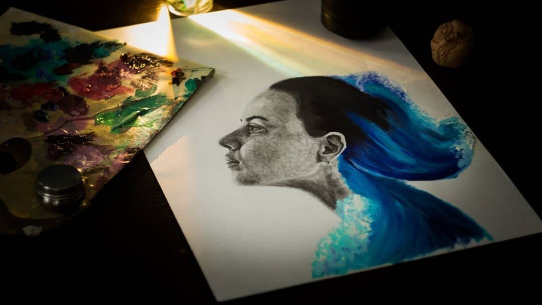 Фото из архива."Мое море" январь 2021. Смешанная техника(Карандаш,уголь и масло) на бумаге. 30х40 см