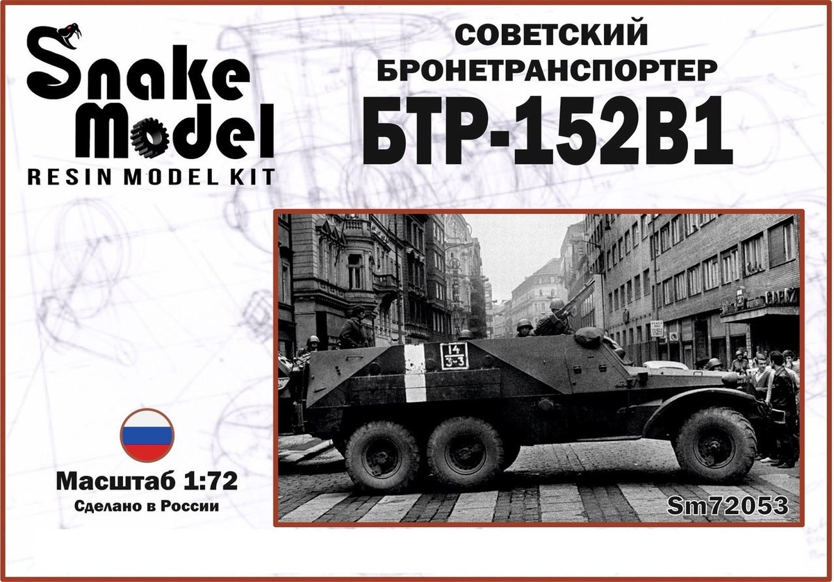 Snake Model из Москвы выпускает модель советского бронетранспортера БТР-152В1 в масштабе 1/72 из полиуретановой смолы с выращенными на 3D-принтере и фототравлеными деталями. Остекление - лазерная резка. Планируются 2-3 варианта окраски и обозначений на декали: Советский Бронетранспортер БТР-152В1 (каталожный номер SM72053)