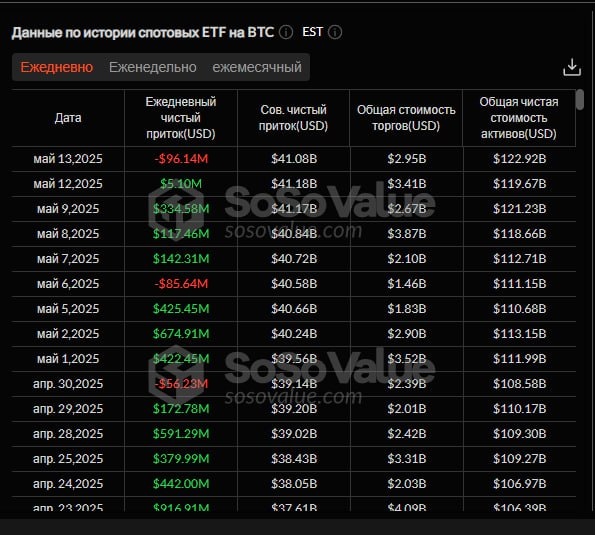 πΈ13 ΠΌΠ°Ρ ΡΠΏΠΎΡΠΎΠ²ΡΠ΅ Π±ΠΈΡΠΊΠΎΠΈΠ½-ETF Π·Π°ΡΠΈΠΊΡΠΈΡΠΎΠ²Π°Π»ΠΈ ΠΎΠ±ΡΠΈΠΉ ΡΠΈΡΡΡΠΉ ΠΎΡΡΠΎΠΊ Π² ΡΠ°Π·ΠΌΠ΅ΡΠ΅ 96,14 ΠΌΠ»Π½, Π±Π΅Π· ΡΠΈΡΡΠΎΠ³ΠΎ ΠΏΡΠΈΡΠΎΠΊΠ° ΠΏΠΎ Π²ΡΠ΅ΠΌ Π΄Π²Π΅Π½Π°Π΄ΡΠ°ΡΠΈ ETF