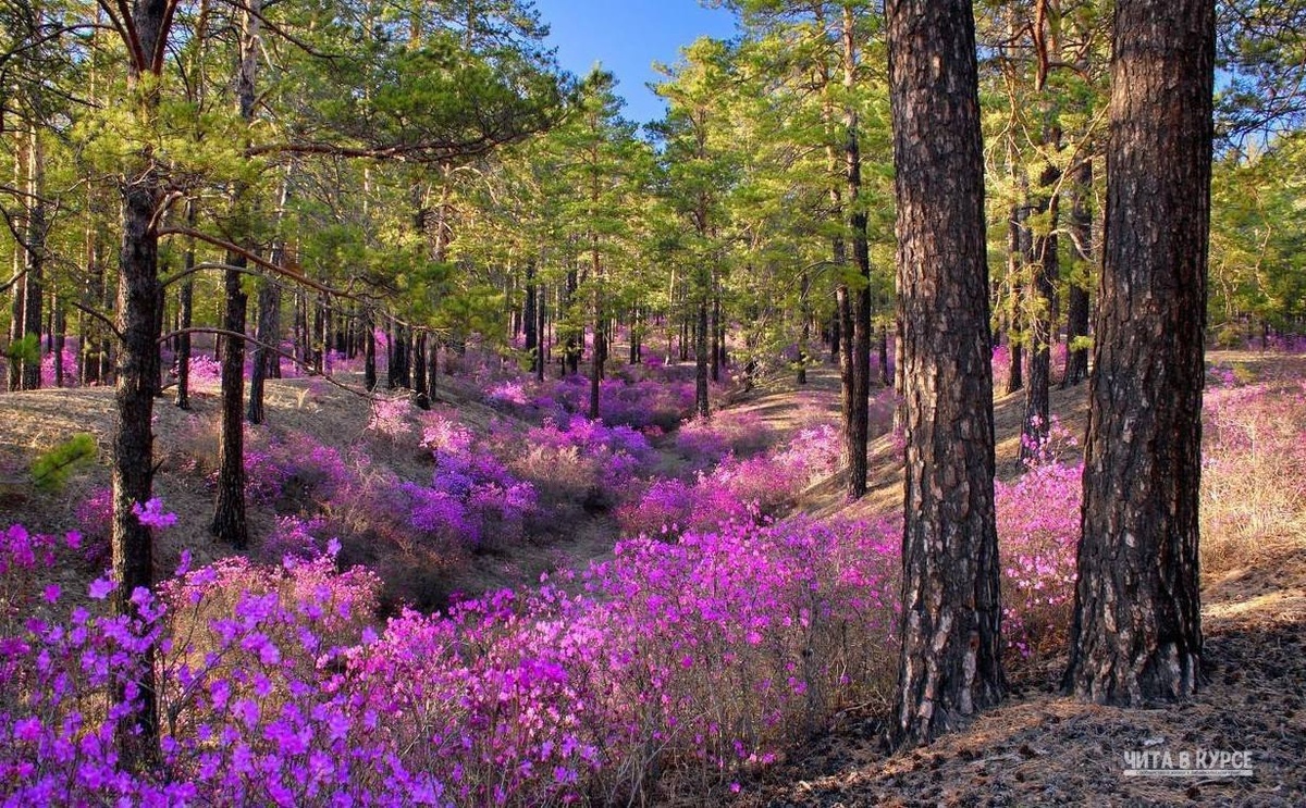 Красивое цветение символа Забайкалья- Багульника