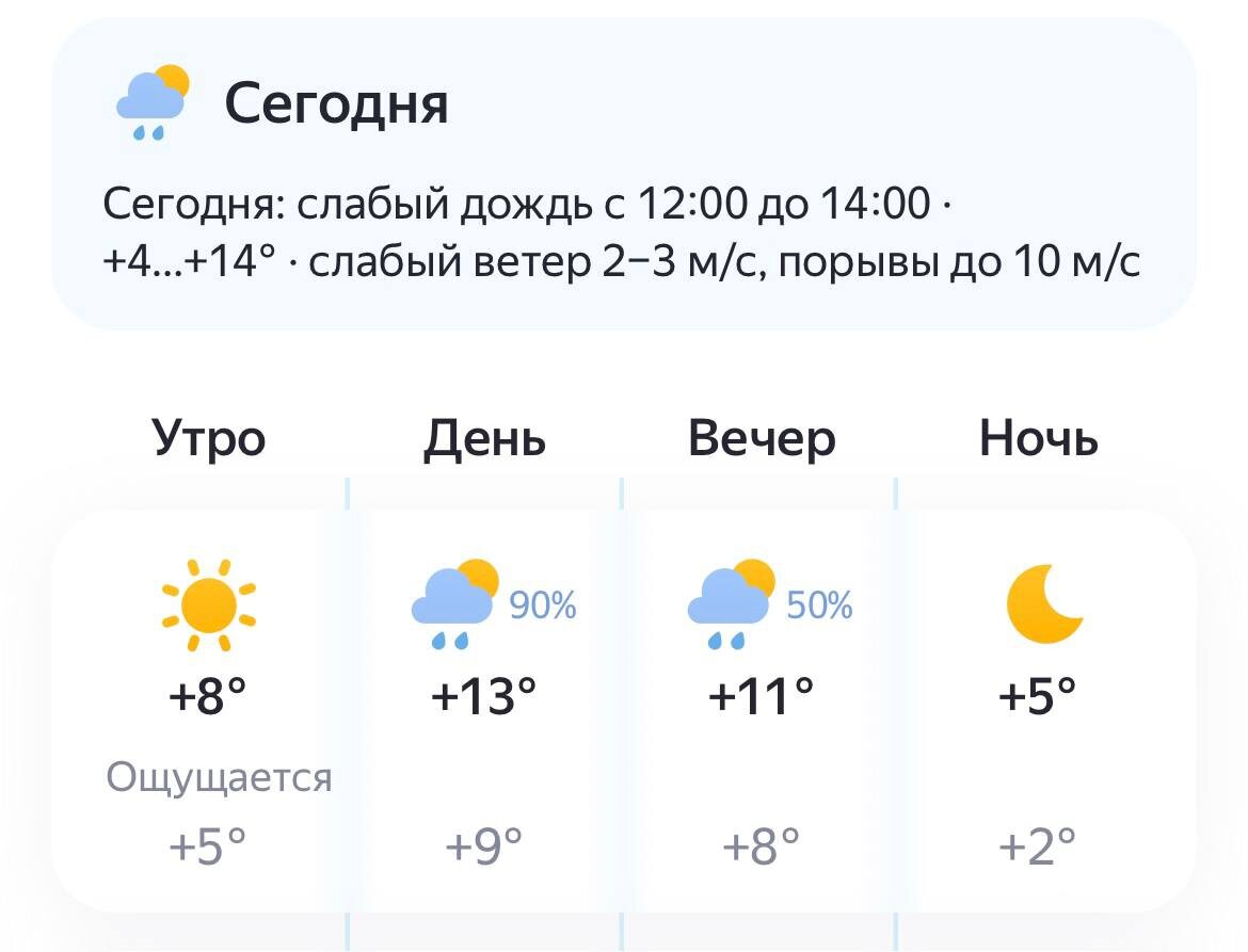 Погода на 14 мая 2025 года