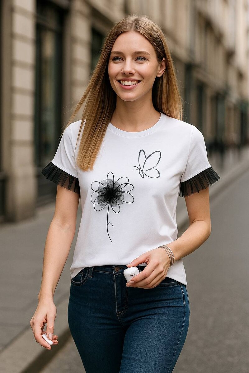 А вот и она! Белая база + сетчатый декор = формула стиля, которой никто не сможет повторить. Топовая футболка, которая нужна именно тебе💗
