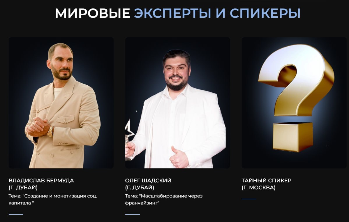 Владислав Бермуда, признанный международный спикер и эксперт по кроссмаркетингу, поделится секретами создания и монетизации социального капитала. Олег Шадский откроет возможности масштабирования бизнеса через франчайзинг.