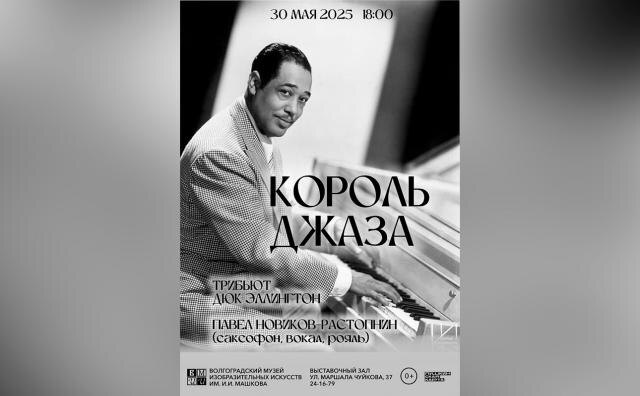 Выставочный зал Волгограда приглашает на концерт «Король джаза». Гости получат возможность в полной мере насладиться шедеврами одного из самых известных джазовых музыкантов XX века Дюка Эллингтона. Настоящее его имя — Эдвард Кеннеди Эллингтон. Дюк — прозвище, в переводе: Герцог. Он был и остаётся одним из самых известных джазменов XX века: аранжировщик, виртуозный пианист и руководитель джаз-оркестра, получивший по праву титул Короля джаза. Исполнитель — лауреат международных конкурсов, композитор и саксофонист Павел Новиков-Растопнин. Концерт состоится 30 мая (ул. им. маршала Чуйкова, д.37), начало в 18 часов. Справки и запись по телефону: 24-16-79. 0+