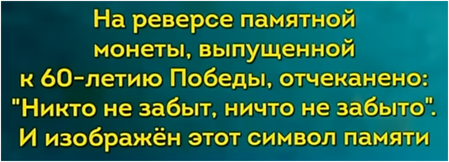 Этот выпуск посвящён Великой Отечественной. И начать я его хотел бы с вопроса о памяти. Был такой вопрос. Ответ «георгиевская ленточка» Кулешов не засчитал. Мол, правильный ответ: вечный огонь. Но ведь ленточка тоже присутствует!!! Всем известно, что Александр Матросов закрыл собой амбразуру вражеского ДЗОТа. Не помню, какая цифра прозвучала в «Своей игре», но Нейро пишет, что в годы ВОв подвиг Матросова повторило более 400 человек. Удивило меня то, что 7 из них ВЫЖИЛО!!! Удивил и вопрос ниже. Это РУЗВЕЛЬТ. Американское посольство было в удалении – пояснили. Но почему не в британском?! Они же им ближе по духу и крови. Удивила немецкая наступательная операция в 1945 году: БАЛАТОН Мне понравились ГОРОДА. Игроки опять удивляли. Отвечали на разные иногда очень непростые вопросы, но городов они не знают. Игра началась с ПОЛОЦКа: Не думал я, что специально освобождению Полоцка может быть посвящена песня. ЕЛЬНЯ Ржев - Тверская область! Монетный двор в Ленинграде 20 июня 1944 вновь заработал.