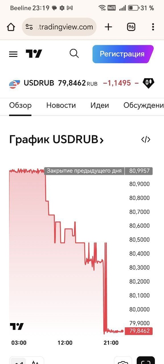 📉 Курс доллара упал уже ниже 80 рублей
