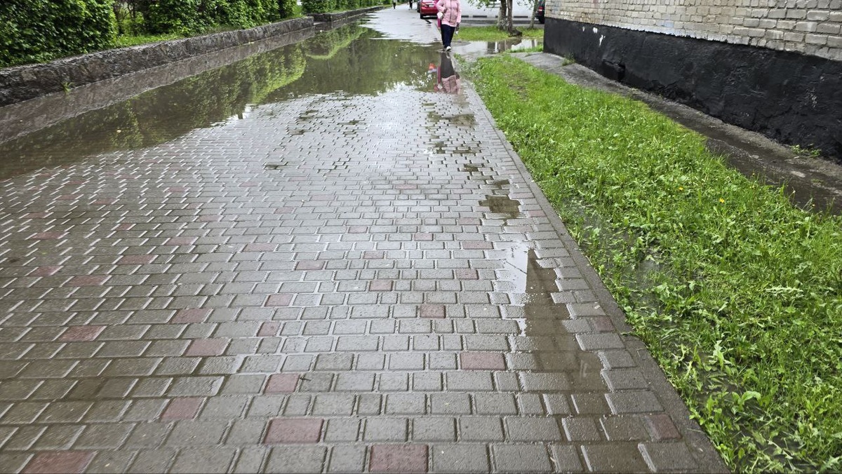 Центр города. Район общежития педагогического колледжа. Каждый раз, когда идёт дождь, здесь появляется такая лужа. Не пойти. Вся вода бежит с проезжей части на тротуар 🌧🌧🌧 Фото: Наталья Сладкова.