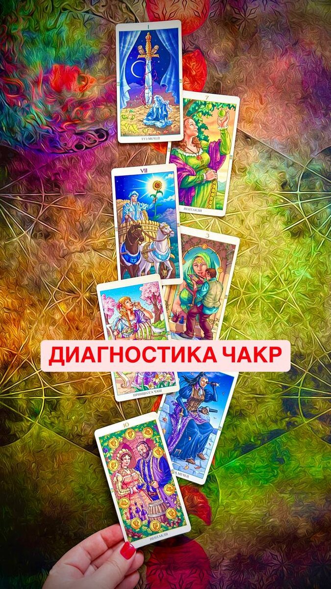 💗💖💗💗💗 😍 Пример открытых всех семи чакр у человека. ✨ Расклад «Диагностика чакр» показывает, в каком состоянии на сегодняшний момент находятся Ваши чакры (энергетические центры). ✨ Что показывает данный расклад у девушки: 🔴 Муладхара: Десятка пентаклей - у девушки хорошая опора и фундамент, есть прочная поддержка семьи. Девушка твердо стоит на ногах, сейчас всё хорошо, она чувствует безопасность и может опираться на внутренний стержень. 🟠 Свадхистана: Принцесса мечей - девушка заботится о себе и в ожидании приятных событий в личной жизни, у нас девушка-кокетка )) она знает себе цену и любит удовольствия, планируя их.. 🟡 Манипура: Принцесса чаш - на сегодняшний день в сфере реализации у девушки всё в порядке, кайф и наслаждение от проделанной работы, очень внутри тепло. Амбиции удовлетворяются. 🟢 Анахата: Тройка пентаклей - любовь проявляется через творчество, мягкость, работу в группе. любовь и трепет к тому, что она делает. 🔵 Вишудха: Колесница - девушка стремительно
