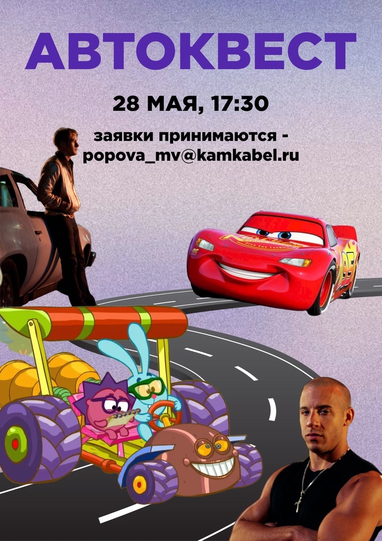Кто соберется 28 мая в 17:30 у АБК-2 (ул. Гайвинская, 86)? Участники первого автоквеста! Автоквест - вид интеллектуально-подвижных игр на автомобиле, связанных с городским ориентированием. Командам предстоит выполнить цепочку заданий, посещая при этом разные места микрорайона Гайва. Важно! Положение о проведении автоквеста и форма заявки в нашей группе ВКонтакте. Заявки принимаются на почту popova_mv@kamkabel.ru или в тг @BA_kamkabel Вы еще можете позвонить по номерам 21-26 или 48-36, и вам всё подробно объяснят.