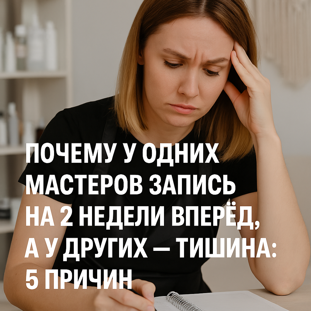 👩🎨 В бьюти-сфере, где каждый второй — мастер по бровям, ресницам или ногтям, есть мастера, к которым невозможно записаться — всё занято на 2 недели вперёд. А есть те, кто выкладывает сторис «Свободно завтра!» — и всё равно пусто. Почему так происходит?