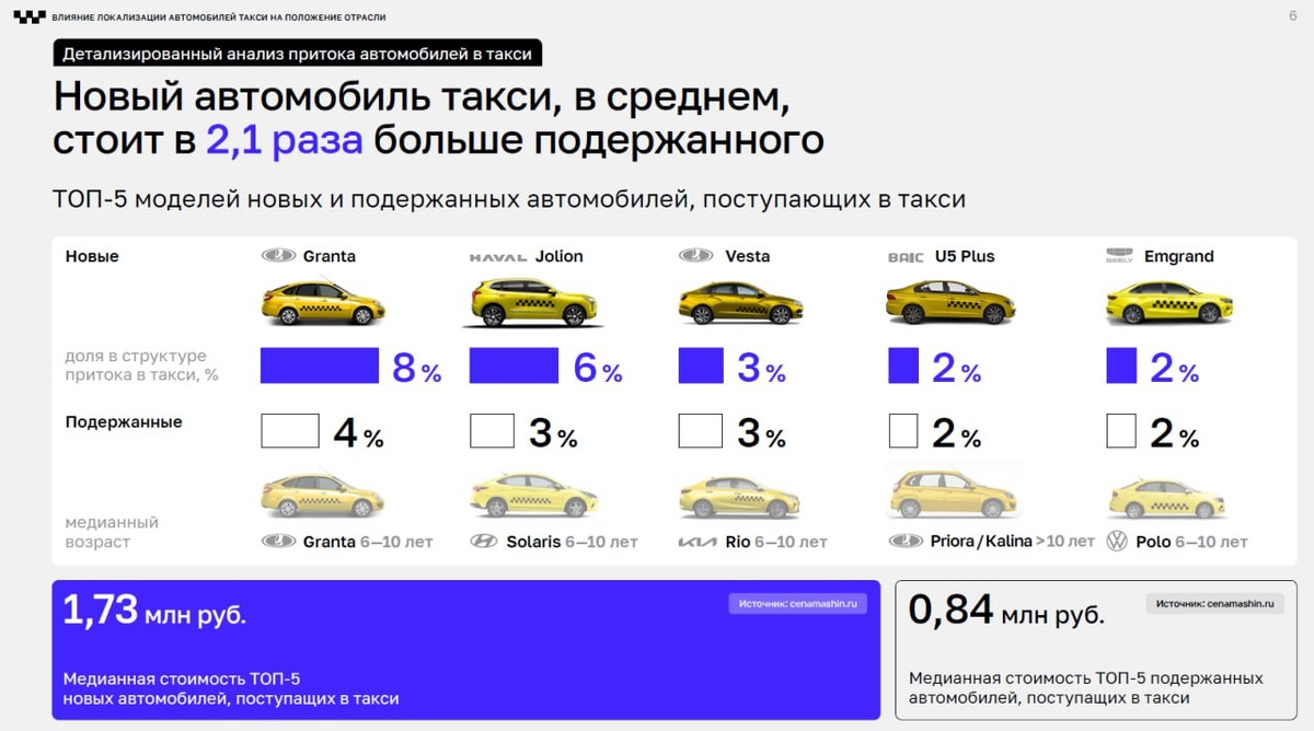 Глава Комитета Госдумы по транспорту Евгений Москвичев полагает, что примерно 1 млн 46 тысяч машин, которые значились в такси на 1 мая 2025 года, "будут работать до списания 10-15 лет, пока технически исправны".