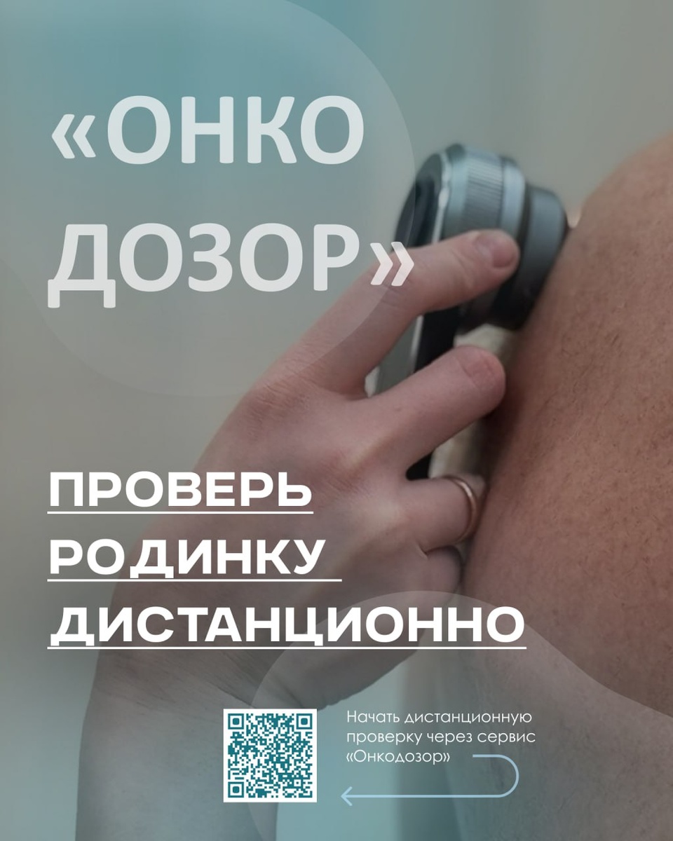 «Онкодозор: проверь родинку!» — бесплатный онлайн-сервис для всех, кто заботится о своем здоровье. Май во всём мире традиционно посвящён теме раннего выявления и профилактики рака кожи. Для тех, кто заботится о своём здоровье, в Томском онкологическом диспансере доступен онлайн-сервис «Онкодозор: проверь родинку!». Это удобный способ предварительного дистанционного скрининга подозрительных кожных образований. Чтобы воспользоваться сервисом, необходимо: – перейти по ссылке: clck.ru/3339C5 – заполнить короткую анкету – прикрепить не менее трёх качественных фотографий родинки После обработки заявки врач направит заключение на указанный вами электронный адрес. Сервис работает ежедневно и уже более шести лет помогает людям вовремя обращать внимание на изменения кожи, которые могут требовать дополнительной диагностики. «Онкодозор» не заменяет очный приём, но может стать первым шагом к своевременному обращению к специалисту.