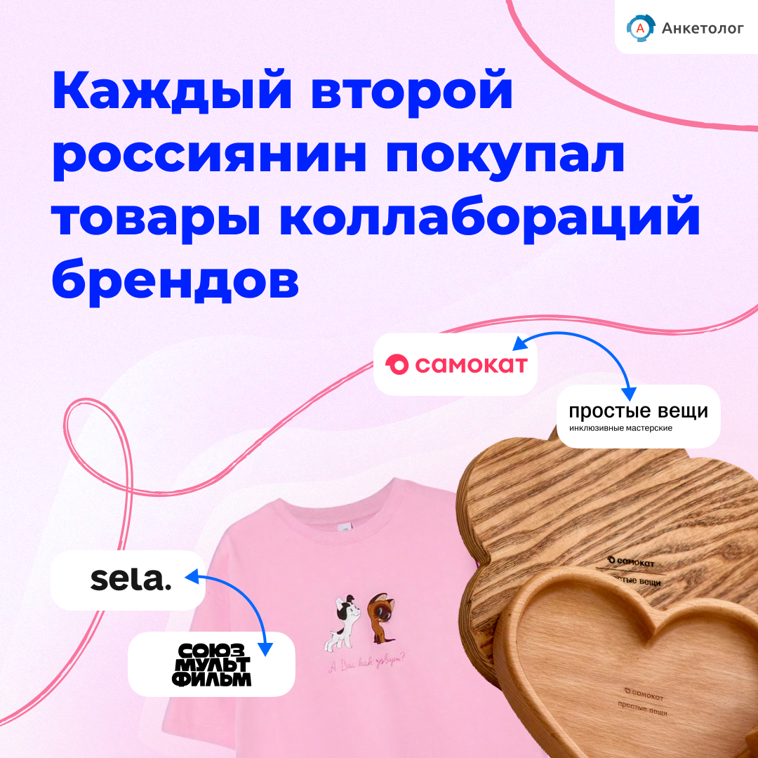Сервис Anketolog.ru провел исследование и выяснил, как россияне воспринимают коллаборации, где о них узнают, и что считают удачным примером взаимодействия брендов. Больше половины опрошенных (54%) приобретали товары из коллабораций. Чаще всего это одежда, косметика и продукты питания. Большинство участников опроса хорошо знают коллаборации брендов. Почти четверть (24%) респондентов заявили, что замечают их часто, 61% — время от времени, 14% — редко. Основными источниками информации о коллаборациях брендов становятся социальные сети (67%), реклама (52%) и магазины (39%). Около половины опрошенных (47%) реагируют на новости о коллаборациях с интересом. Ещё 23% испытывают энтузиазм, особенно если речь идёт о любимых брендах. Треть респондентов (34%) не отмечают энтузиазма. Среди наиболее запоминающихся коллабораций респонденты назвали проекты: ТВОЁ и Третьяковской галереи, ИКЕА и LEGO, LEGO и Adidas, Nike и Off-White, Dolce&Gabbana и Smeg, а также Nike и Skims. Из отечественных брендов по