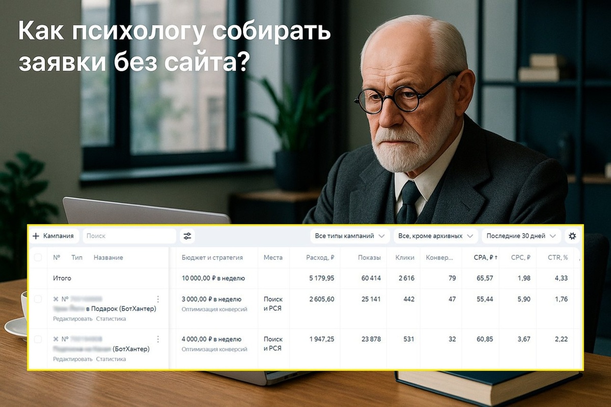Как собрать тёплую аудиторию для психолога — без сайта и заморочек? 🤔 Расскажу, как я делаю это просто и эффективно. 💡 Вместо сайта — собираю простую посадочную страницу, где есть главное: кнопка и короткое описание, зачем человек туда пришёл. 🔍 В Яндекс.Директе запускаю рекламу, чтобы человек кликнул по этой кнопке. А дальше — он попадает в рассылку, где уже можно спокойно рассказать о себе, поделиться пользой, прогреть и предложить свои услуги. Обычно делаю сразу несколько вариантов таких страниц. Например: – одна с подарком (лид-магнитом) – другая — сразу про услугу – третья — с другим акцентом или формулировкой 📊 Потом смотрю, что сработало лучше. Вот, например, на скрине выше: — потрачено чуть больше 5 000 ₽ — получено 79 заявок — в среднем — 65 ₽ за подписчика Рабочая схема, особенно если только начинаешь и нет готового сайта 🙌 Хотите так же? Напишите — помогу собрать свою систему.