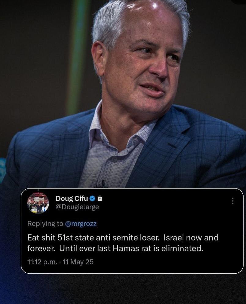 НХЛ отстранила совладельца и вице-председателя «Флорида Пантерз» Дага Сифу от участия в деятельности команды из-за поста «про 51-й штат США» после четвертого матча с «Торонто Мэйпл Лифз». Об этом говорится в заявлении лиги, опубликованном The Toronto Sun. В соцсети X Сифу вступил в перепалку с болельщиком «Мэйпл Лифз», сравнив четвертьфинальное противостояние «Флориды» с «Торонто» с конфликтом между Израилем и Палестиной. «Ешь дерьмо, «51-й штат», антисемит и неудачник! Израиль сейчас и навсегда. Пока не будет уничтожена последняя крыса ХАМАС», — написал Сифу в ответ на пост фаната «Торонто». Вскоре пост был удален, а сам аккаунт Сифу заблокирован. НХЛ отреагировала на произошедшее отстранением миноритарного акционера «Пантерз». «НХЛ пришла к выводу, что посты в соцсети X г-на Сифу были неприемлемыми и неуместными, — говорится в заявлении НХЛ. — В результате г-н Сифу был отстранен на неопределенный срок от любого участия в деятельности клуба и НХЛ». Также отмечается, что в ближайшие дн