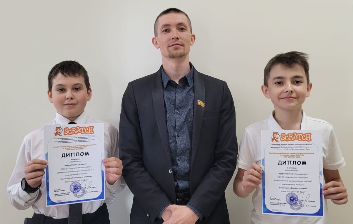 🔥 Юные таланты зажгли на конкурсе по программированию! Наши звездочки 💫 из кружка "Робототехника" — Роман Серафимов и Рузаль Фаизов — только начали свой путь в программировании, но уже взяли бронзу на республиканском конкурсе "Мир Scratch 2025"! 🏆 ✨ Роман создал крутую викторину про военную технику — учим историю с интересом! 🎮 Рузаль разработал игру про современных героев — актуально и мощно! Особая благодарность их наставнику — Евгению Александровичу Яковлеву за поддержку и вдохновение! 👏 Это только начало — так держать, ребята! 💻🚀 Подробнее в материале 👈 #Робототехника #Программирование #Успех #НашиТаланты #Scratch