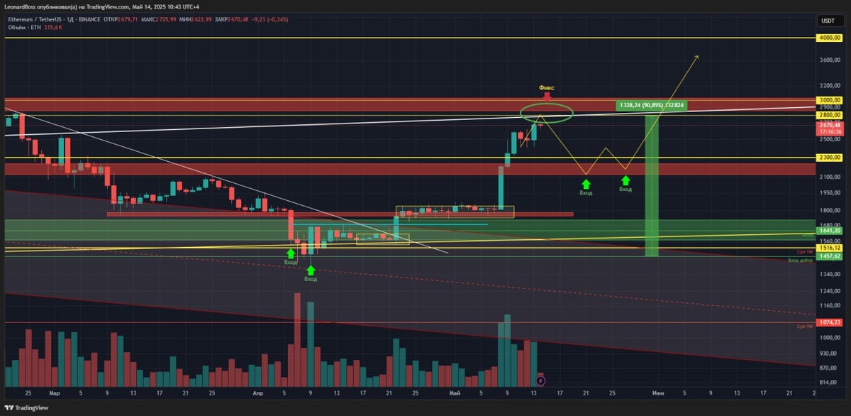В ответ на пост #ETH 🕯Локально🕯 ⚠️Прибыли в нижний диапазон ожидаемой зоны доставки. Есть ощущение финального выстрела в блок сопротивления и дальнейшей коррекции. Буду вести сделку руками на средних ТФ и если увижу малейшую опасность, как и говорил ранее, буду фиксировать сделку, поскольку она у меня маржинальная с х3 плечом, о чём вы также знаете, и соответственно профит также достойный!! P.s. сегодня в разговоре со своим давним приятелем и коллегой, обсуждали рынок и в большей мере сам ETH. Мой коллега также довольно опытный трейдер, однако в крипте он всего чуть больше года (три года я ему доказывал, что не сошёлся свет на фондовом рынке))). Так вот, он также тянет аналогичную сделку по ETH, и также с х3 плечом (у меня подсмотрел)), и с большим непониманием реагировал на моё решение ближайшей фиксации прибыли, либо близкого стопа. У него самого, стоп находится в зоне уровня 1800$, а цель по данной сделке минимум уровень 4000$! И да, такая сделка также может быть успешной, но...