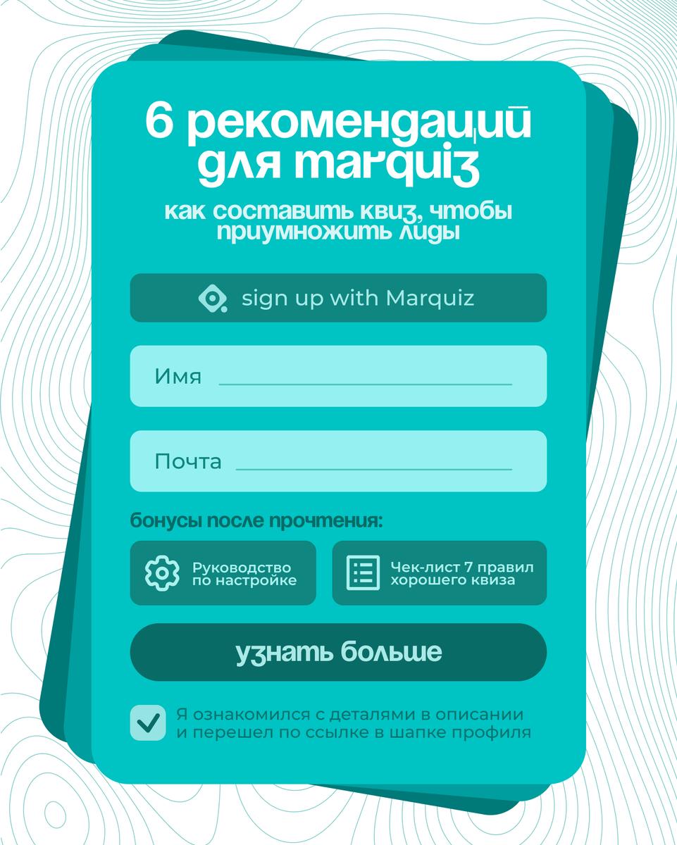 Квиз должен быть полезным для пользователя, а не выглядеть как форма для сбора данных. Чем больше пользователь чувствует, что результат "про него", тем охотнее он станет вашим лидом.
