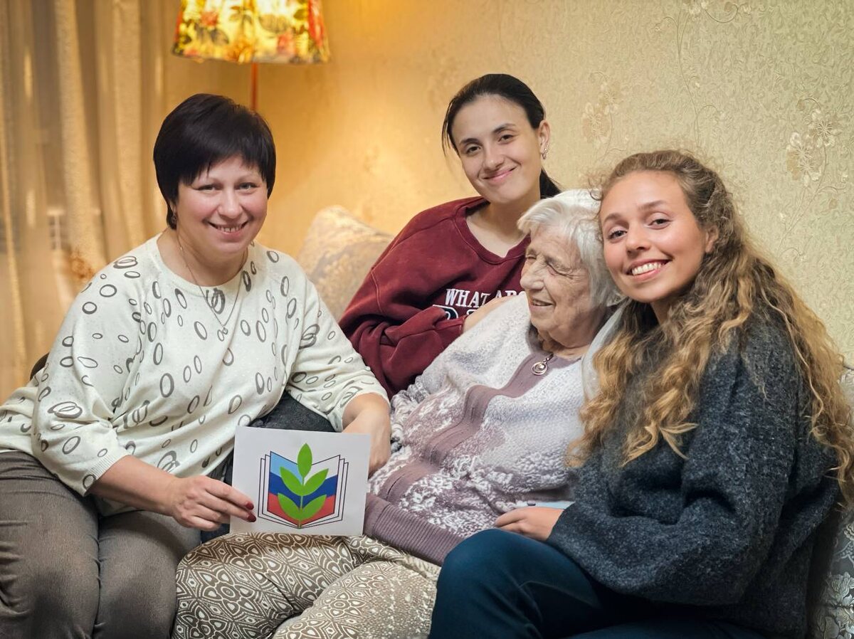 На фото изображены (слева направо): Василенко Татьяна (дочь) – член Профсоюза Государственного бюджетного дошкольного образовательного учреждения Луганской Народной Республики «Луганский ясли-сад комбинированного вида № 125», Кокина Ирина Анатольевна (мама – 21.10.1936 года рождения) – «ребёнок войны», Василенко Евгения (внучка), Красильникова Анастасия (внучка). Победа – продолжение жизни! Победа – это любовь! Из воспоминаний мамы: «Я помню войну, как можно ее не помнить, хоть и была маленькой девочкой. Война застала мою семью в Иваново. Мои три брата пошли защищать Родину. Я и мои две сестры с родителями остались дома – жили, ждали, надеялись и верили в победу. Помню, как мама рисовала картины, а я ей помогала – делала окантовку картин. Потом мама их продавала на рынке, чтобы пережить эти тяжелые годы и не умереть от голода. Старшая сестра Маргарита работала на военном заводе. Для нас очень важно было слушать сводки Совинформбюро. Голос Юрия Левитана для нас, для всего народа, был