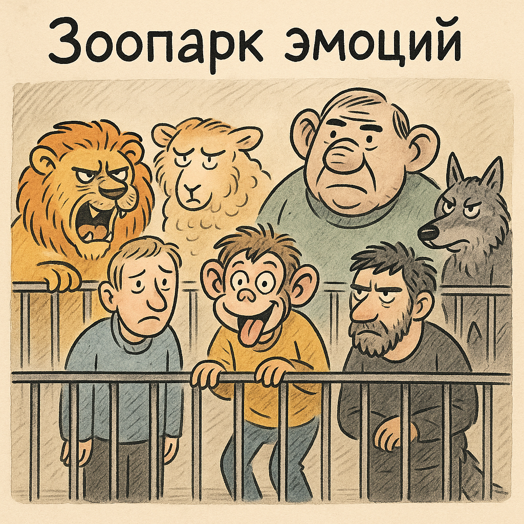 И наши эмоции — это не рациональные «сигналы мозга», как нас учат в вебинарах по эмоциональному интеллекту. Это стая. Это зоопарк. Это дикая природа внутри нас. Ты его узнаешь сразу. Он входит в комнату — и температура падает. Говорит мало, но каждое слово как укус.