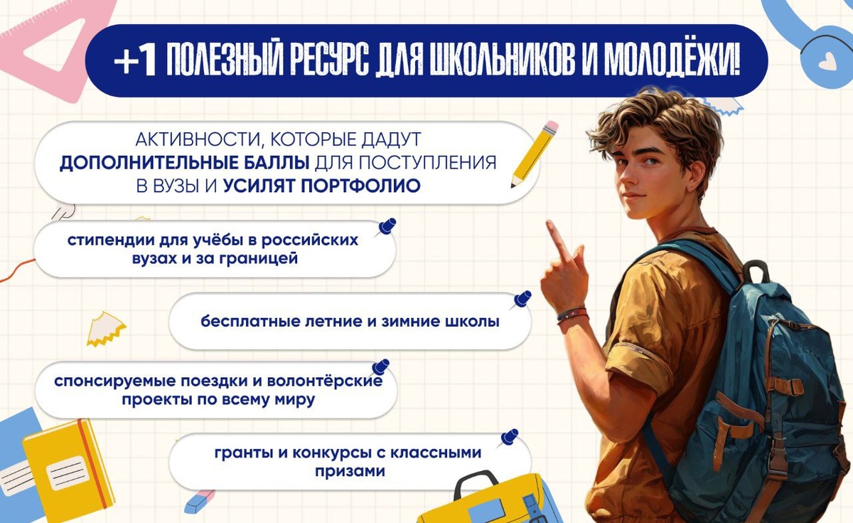 +1 полезный ресурс для школьников и молодёжи! 🔥 Новый канал с актуальными возможностями по всеми миру для вашей самореализации и карьеры! 🔍 В этом канале Вы найдёте активности, которые дадут дополнительные баллы для поступления в вузы и усилят портфолио ➡️ стипендии для учёбы в российских вузах и за границей ➡️ бесплатные летние и зимние школы ➡️ cпонсируемые поездки и волонтёрские проекты по всему миру ➡️ гранты и конкурсы с классными призами ❗️Не пропустите самые классные возможности и присоединяйтесь ✈️ ТГ канал с возможностями для школьников и студентов колледжей ✈️ТГ канал StudyGrants — стажировки| стипендии| летние школы для студентов, выпускников и молодых специалистов