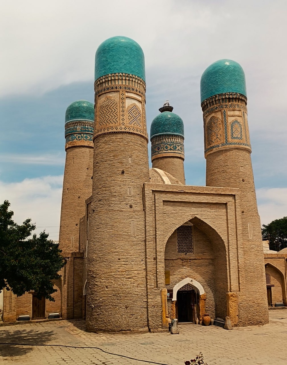 Чор-Минор в Бхаре — медресе Халифа Ниязкула Здесь могли остановиться на ночлег путники и торговцы, следующие по Шёлковому пути, независимо от веры. 4 башни символизируют четыре стороны света и четыре религии — ислам, христианство, иудаизм и буддизм. В каждой свой декор, узор не повторяется. Купол в центре отсылает к образу Единого Бога, «одно на всех небо». #узбекистан #путешествияблондинки