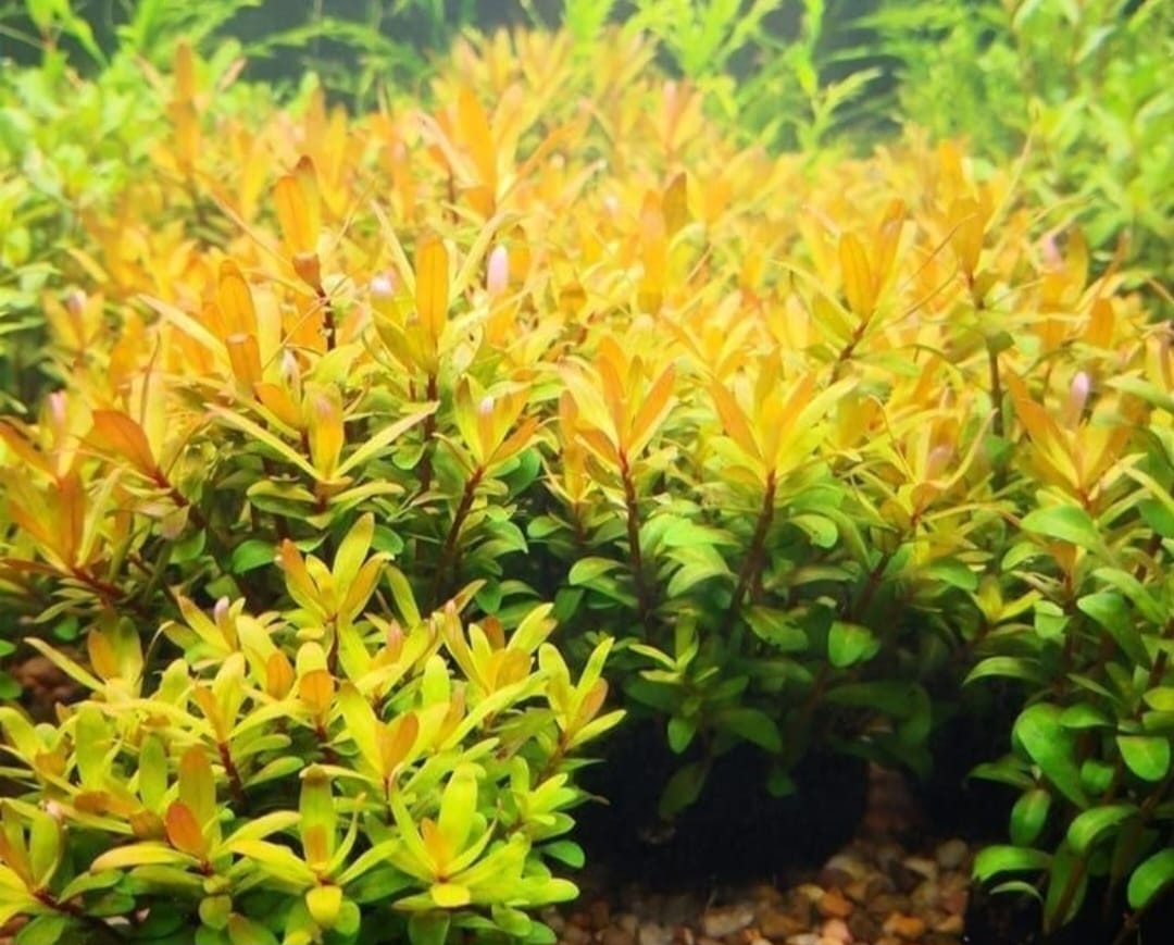 ## Несея педицелата - экзотическое украшение аквариума ### Происхождение и внешний вид **Несея желтая** (Nesia peduncularis) - редкое для домашних аквариумов растение, произрастающее в болотистых водоемах Западной Африки, Мозамбика и Танзании. Растение отличается привлекательным внешним видом и может достигать внушительных размеров в аквариумных условиях. ### Особенности строения **Стебель** имеет лежачую или слегка наклонную форму, толщина до 8 мм. Окраска варьируется от коричневатой до светло-зеленой, в зависимости от условий содержания. **Листья**: * Крупные (9х1,5 см) * Расположены супротивно * Окраска желто-коричневая или зеленая * При правильном уходе приобретают красноватый или коричневатый оттенок **Размеры в аквариуме**: * Высота: 30-40 см * Ширина: 15-20 см * В оптимальных условиях может цвести, образуя надводные цветоносы ### Условия содержания **Требования к аквариуму**: * Объем: не менее 100 литров * Расстояние между кустами для предотвращения затенения * Размещение