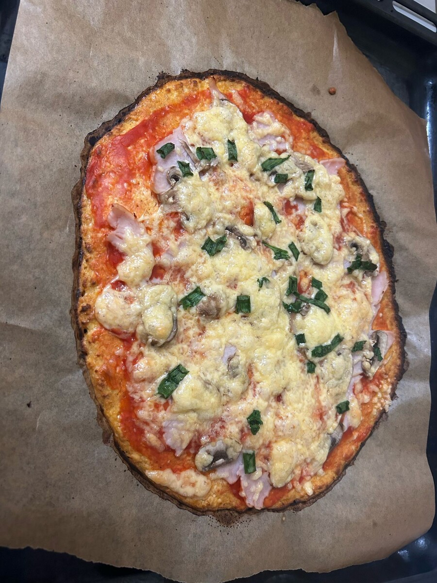 Диетическая пицца — это не просто вкусное лакомство, а способ не отказываться от любимого блюда, оставаясь на пути к здоровью. Легкая, но сытная, она подарит вам удовольствие без лишних калорий. Такой вариант пиццы можно есть без угрызений совести даже в середине недели! ### Рецепт диетической пиццы: **Ингредиенты:** * 200 г обезжиренного творога * 1 яйцо * 100 г низкокалорийной ветчины * 100 г шампиньонов * 2-3 ст. ложки томатной пасты * Соль и перец по вкусу * Пряности (орегано, базилик) **Приготовление:** 1. Смешайте творог с яйцом, добавьте немного соли и перца. Замесите тесто, которое будет основой для вашей пиццы. 2. Раскатайте тесто на пергаментной бумаге в круглый или прямоугольный формат. 3. Пропеките основу в разогретой до 180°C духовке 10-12 минут. 4. Нарежьте ветчину и шампиньоны. Обжарьте грибы до золотистой корочки. 5. На готовую основу намажьте томатную пасту, выложите обжаренные шампиньоны и ветчину. 6. Поставьте пиццу обратно в духовку на 5-7 минут, чтобы все про