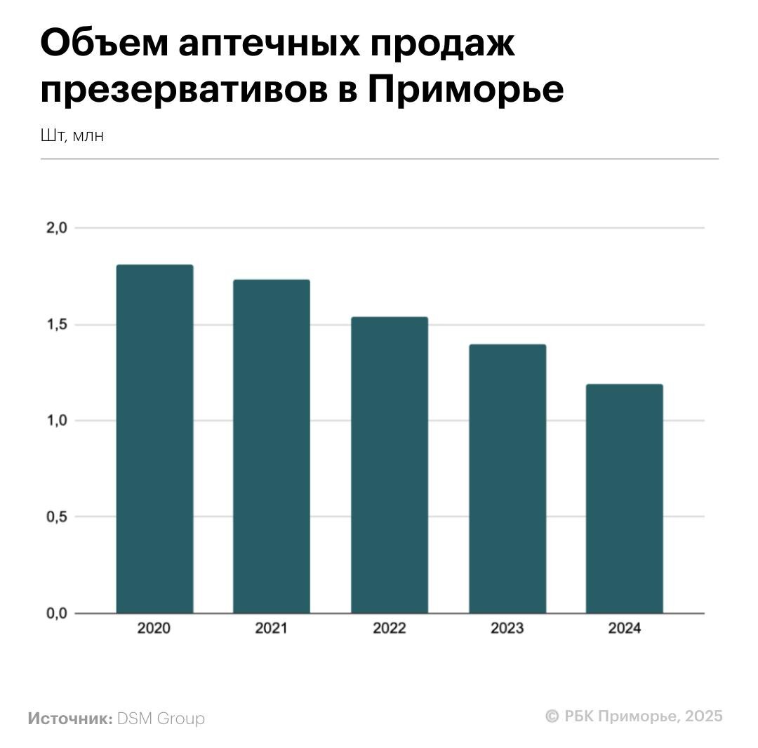 😀😀😀 Приморцы стали реже пользоваться средствами контрацепции Аптечные продажи презервативов и гормональных таблеток за прошедшие пять лет в регионе снизились почти на четверть – на 23,9%. Об этом РБК Приморье рассказали в аналитической компании DSM Group. Согласно статистике, по итогам 2020 года было продано 276,9 тыс. упаковок презервативов и 264,8 тыс. упаковок гормональных таблеток. В 2024-м количество снизилось до 183,6 тыс. и 229 тыс. упаковок соответственно. 🍱Подписывайтесь на РБК Восток