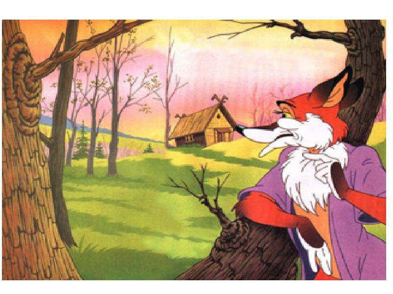 Оселiлись біля річки Сірий зайчик та лисичка. Зайчик —в хатці луб'яній, а лисичка — в крижаній. Ось постукала в віконця тепла сонячна весна, і, розтанула на сонці Біла хатка крижана. Почала лиса зітхати: — Як я житиму без хати? Зараз зайця прожену й влізу в хатку луб'яну! Де вже зайчику малому Суперечить хижаку! Довелось тікати з дому Бідолашному звірку. А лисиця та хвостата Влізла в зайчикову хату і в хатинці луб'яній Оселилась, як в своїй. Пострибав по лісі зайчик, Сiрий зайчик-побігайчик, Сльози річкою ллючи: страшно в лісі уночі Раптом бик iде до нього, та й питає: — Що таке? Мабуть, в зайчика малого лихо трапилось тяжке? — Ой, мене прогнала з хати люта злодійка хвостата! Ой, куди ж тепер піду?.. Де я захисток знайду?.. — Годі, годі, зайчик, плакать, Витри слізоньки свої. Знаю я цю розбишаку, зараз вижену її! Підійшли вони до хати, Бик замукав: — Геть хвостата! Забирайся звідсіля! — А лисиця відмовля: — От як скочу, як підскочу — Полетить від тебе клоччя, на шматочки роздеру Ще й