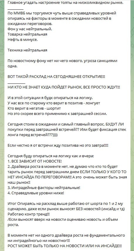 Просто хочу объяснить свою логику на сегодняшнюю сессию, Я сегодня лонги в рамках интрадея не рассматривал совсем, часть шортов закрыл, часть держу.