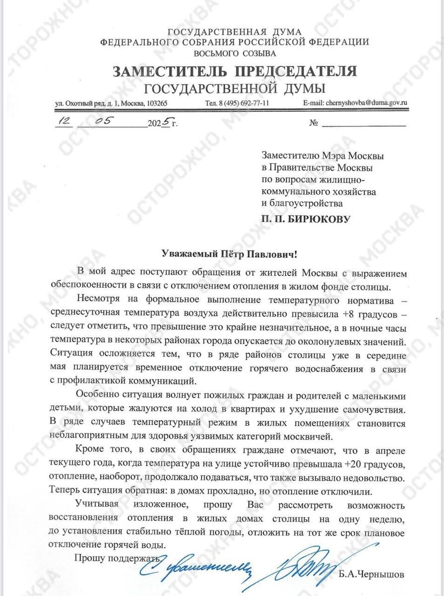 🏙🏙🏙🏙 📙🎓😱🔮 🔜 В Госдуме попросили вернуть отопление в Москве на неделю Обращение к профильным чиновникам направил вице-спикер Госдумы Борис Чернышов: «Многие москвичи не оценили отключения отопления в столице — особенно пожилые люди и семьи с детьми. Несмотря на потепление днём, ночами температура всё ещё близка к нулю, и в квартирах становится ощутимо холодно. Люди боятся простуд, ухудшения самочувствия и просят возобновить подачу тепла. Я считаю, что такие сигналы нельзя игнорировать. Важно действовать не только по инструкции, но и учитывать реальное состояние погоды и интересы людей», - сказал парламентарий. Вице-спикер предложил рассмотреть возможность из-за погода продлить ещё на неделю отопительный сезон в столице, в также не отключать пока людям горячую воду. ‼️ А в вашем городе сегодня холодно? 💬🔊📩🔖 Осторожно, Москва Эти и другие новости - на @gluxixnet. Отправь новость на @gluxixnet_bot и заработай 555 ₽ !