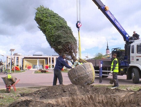 Новую большую ель посадили в сквере калужского ТЮЗа