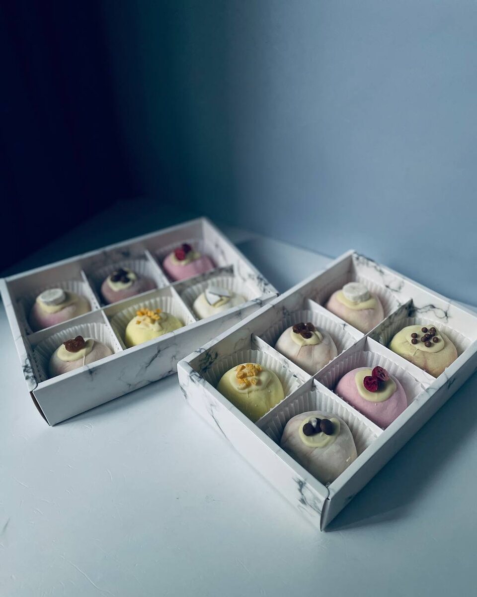Прекрасные моти ❤️ Особый кайф - это тесто. Оно не забито крахмалом (только припыляю сверху). Тянется, но в тоже время тает во рту. И, кстати, я люблю кушать Моти, когда они не до конца растаяли. Чуть замороженными. Тогда они как мороженка, только ещё вкуснее 😉 #ilyashkacake
