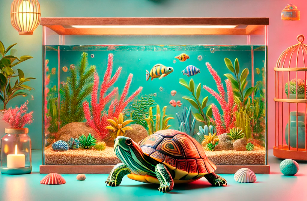 ✔ Нужен очень большой аквариум (от 200 л) с укрытиями. Если аквариум просторный, а черепахи одного размера, конфликтов будет меньше. Но наблюдать за их поведением всё равно необходимо. Гуппи, неоны, данио — черепахи воспринимают их как добычу и быстро съедят. Цихлиды, сомы-прилипалы, крупные барбусы иногда уживаются с черепахами, но: