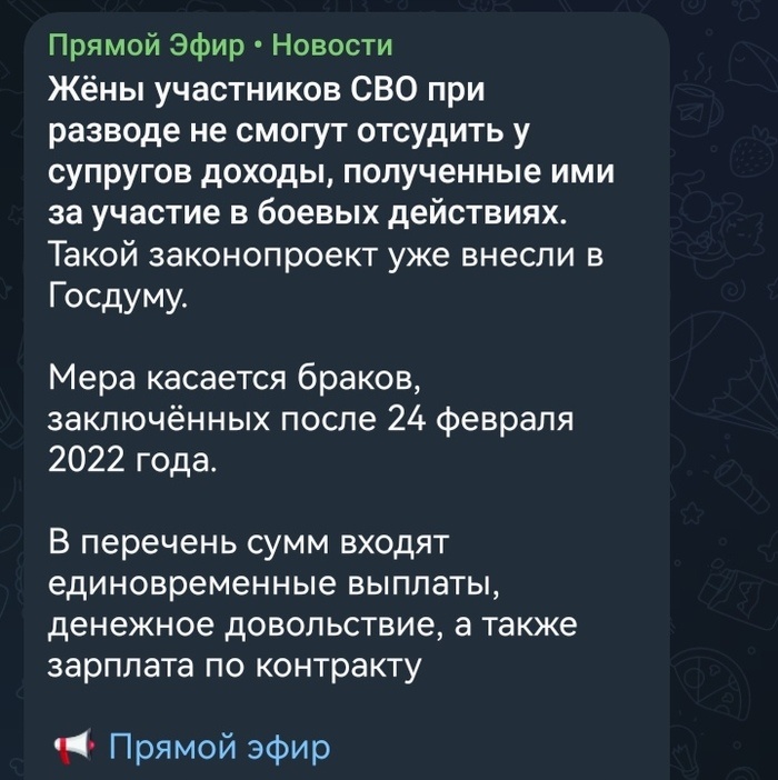 Недавняя новость (здесь уже была): Абсолютно правильный закон, и впервые за долгое время аплодирую стоя. Надеюсь, примут. Ключевое в нём - "Мера касается браков, заключённых после 24.02.2022 г." Для принятия такого закона очень много причин, и много случаев, когда выходят за участника СВО замуж, и ждут пока его завалят, чтобы деньги получить. Пехотинец или штурмовик? Замечательно. То что нужно. Такие викинги в основном долго не живут (тапками не кидаться, я сам штурмовик с 23го года, а на СВО с 22го). И на волне таких правильных по отношению к участникам СВО инициатив хочу предложить свою. Не секрет, что многие военные госпитали работают с начала боевых действий в практически авральном режиме. Мы свои потери и количество раненых не раскрываем, но они есть, и их не мало. Со сложными случаями отправляют в Москву или Питер. Менее сложные лечат как могут там, куда ты попал, либо отправляют по России туда, где есть места (мед.эшелонами), ведь на всех объективно мест и врачей в хороших госпи