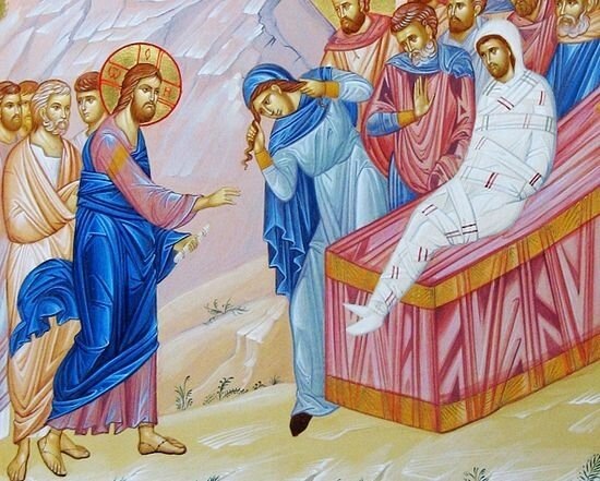 Перенося чудесное и радостное событие, происшедшее у наинских ворот в древности, в сегодняшний мир, в нашу христианскую жизнь, можно задуматься о том, насколько наш ум, привязанный к земле, способен принять верой Спасителя, насколько слова «Не плач!» и «Встань!» могут изменить привычный образ мыслей человека, скитающихся вне стен Горнего Иерусалима. Так толкователи Божественного слова помогают нам лучше понять услышанное в храме, лучше понять Евангелие, чтобы оно стало нашим руководством в жизни.