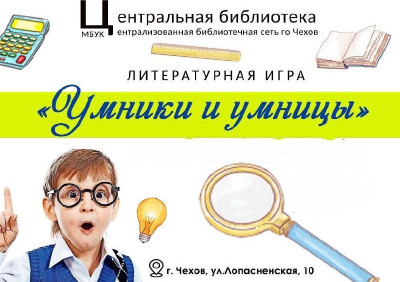 ✨ Интерактивная викторина "Умники и умницы" 🔎Вам нужно будет ответить на вопросы, разгадать ребусы. 🧩Проявите эрудицию и логическое мышление, ждём Вас 🚫 Возраст: 6+ 📆 15.05.2025 🕛 12:30 🏢 Центральная библиотека 📍 г. Чехов, ул. Лопасненская, д.10 🪙 Вход свободный❗️ #webЧехов ✅ Мероприятия Чехов https://dzen.ru/id/66cc4b48e9ef144699238a51 http://vk.com/chekhov_events http://dzen.ru/chekhov_events