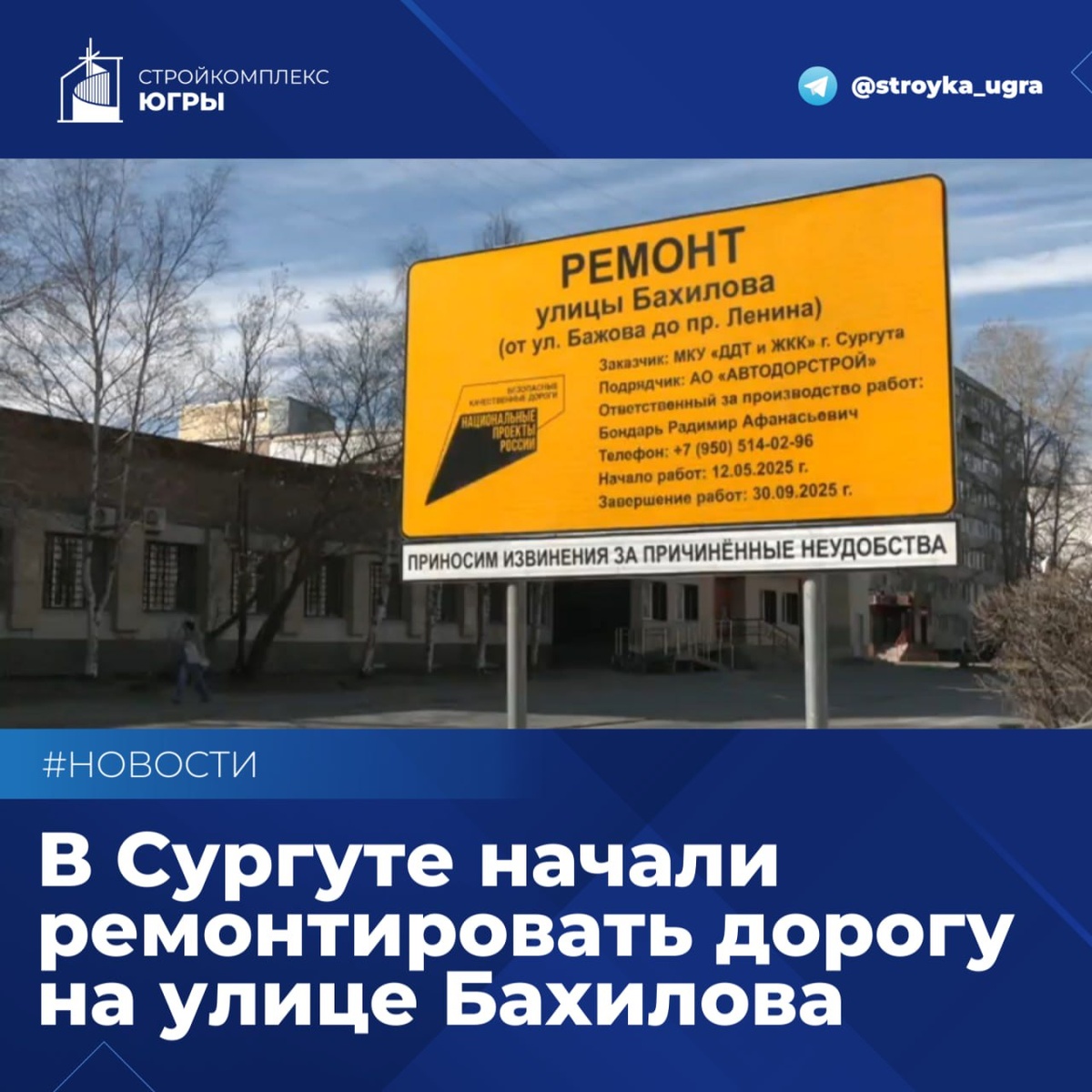 В Сургуте начали ремонтировать дорогу на улице Бахилова. ❗️На участке от улицы Бажова до проспекта Ленина перекрыто движение. Работы планируют завершить к 30 сентября, сообщает телеканал «СургутИнформТВ». ➡️ Временные затруднения для автолюбителей крупнейшего города Югры - лишь этап пути к масштабным позитивным переменам, ведь в этом сезоне ожидаются и другие крупные реконструкции на дорогах. 🛣️ Кроме улицы Бахилова, в рамках национального проекта «Инфраструктура для жизни» администрация Сургута планирует обновить дорожное покрытие на улицах Югорской и Юности, а также отремонтировать проспект Ленина. Работы будут проводиться на двух участках: от улицы Магистральной до улицы Декабристов и от улицы Декабристов до дома № 35. Реконструкция последнего участка рассчитана на два года. ▶️ Напоминаем, что городские власти также планируют в ходе всей дорожной кампании этого сезона обновить 14 внутриквартальных проездов и 10 участков тротуаров, а также устранить колейность на площади свыше 3