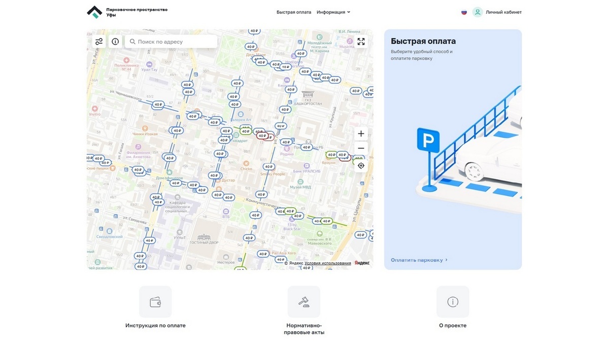 Платные парковочные места будут действовать на девяти улицах в историческом центре города, сообщили в администрации столицы. Всего планируется обустроить 1188 парковочных мест. Часа стоянки на них обойдется в 40 рублей. Оплатить стоянку водители смогут через мобильное приложение «Горпарковки». В приложении есть подробная карта платных парковочных мест, в том числе льготных. Кроме того, водители сразу увидят, сколько мест свободно на том или ином участке улицы. Платить за парковку можно через личный кабинет, открыв виртуальный счет. Инфографика: Администрация Уфы.