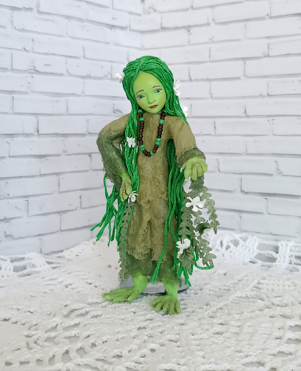 Ватная игрушка "Кикимора", часть 4. Платье из ваты, имитация тины