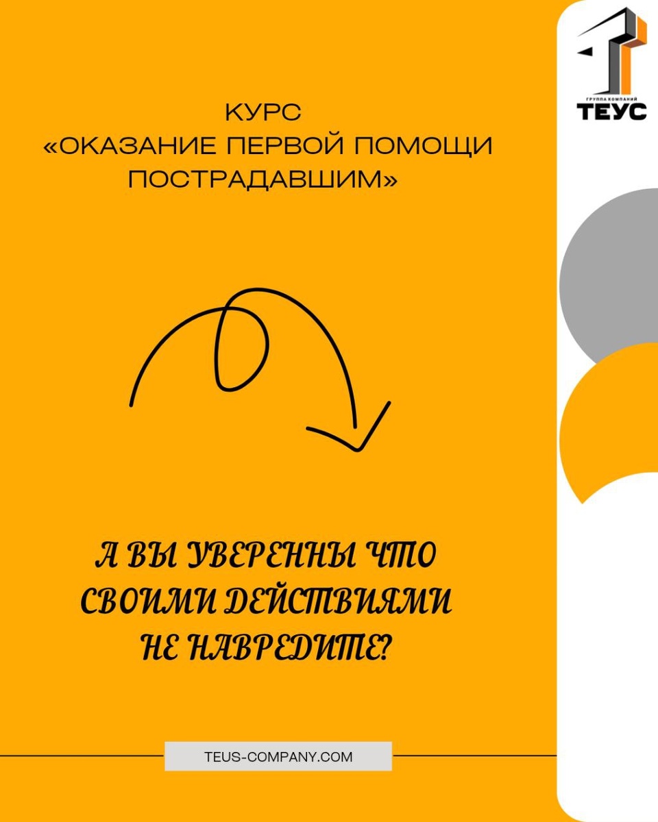 ⏱️ В экстренной ситуации счёт идёт на секунды. От ваших действий зависит жизнь и здоровье человека! Курс «Оказание первой помощи пострадавшим» от Учебного центра ЦКУ ТЕУС в рамках программ обучения по охране труда научит быстро и грамотно действовать при травмах, ожогах, обмороках и других неотложных состояниях. 📲 Доступен онлайн, в удобное время, с выдачей удостоверения установленного образца. 🧑🏫 Кому обязательно пройти курс: 👔 Руководителям организаций ⚙️ Специалистам по охране труда 🏭 Работникам производственных предприятий ☢️ Сотрудникам с вредными и опасными условиями труда 🔐 Ответственным за безопасность 👷 Мастерам, прорабам, бригадирам 🏢 Сотрудникам офисов, складов, ТЦ, школ, детсадов и др. ‼️ Если в штате есть хотя бы один сотрудник, работодатель обязан организовать обучение! Основание — ТК РФ и Постановление Минтруда №1/29. ⚠️ Что грозит за отсутствие обучения: 💸 Юрлица — штраф до 130 000 ₽ 🧾 Должностные лица и ИП — до 40 000 ₽ или приостановка деятельн