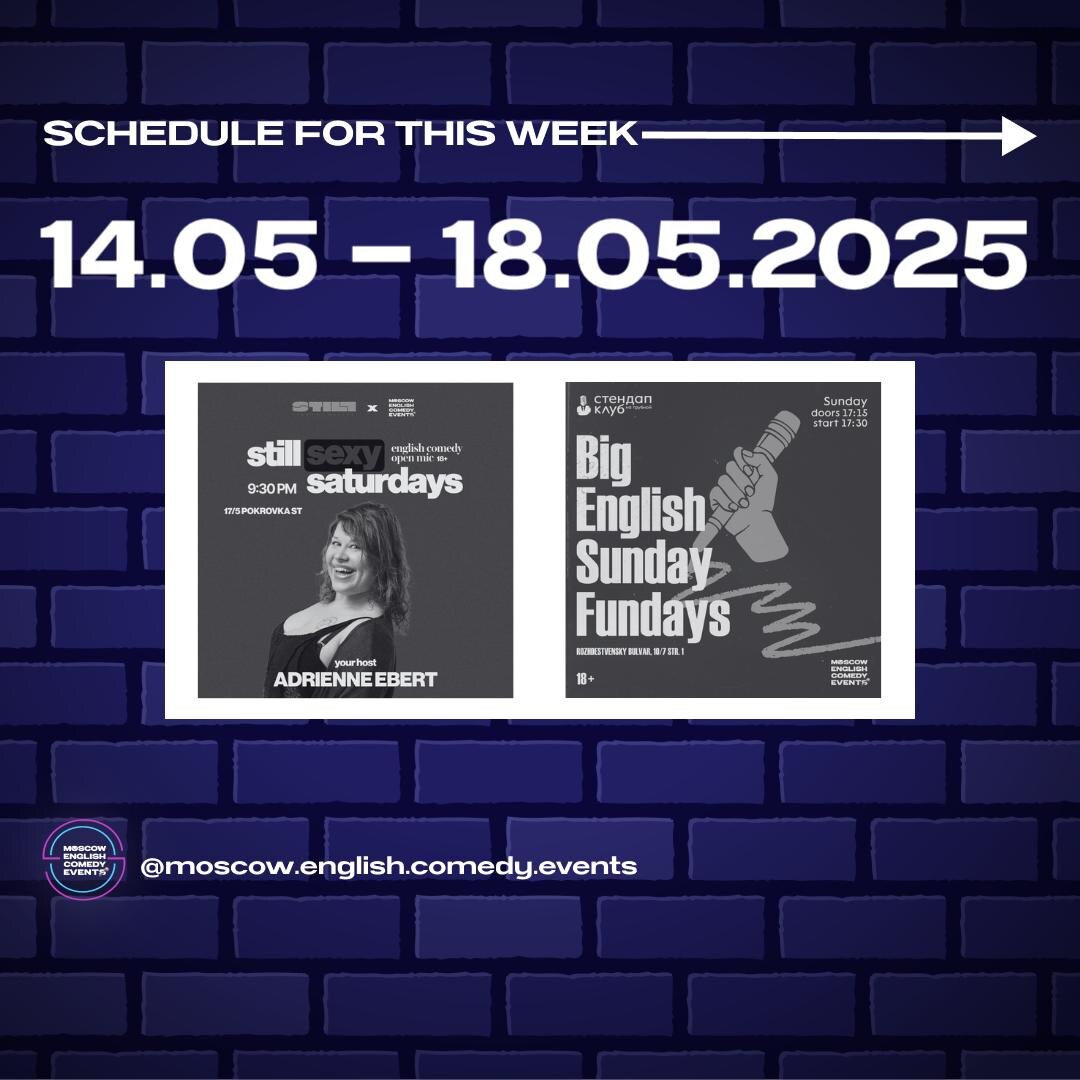 Schedule for this week (14.05– 18.05)❗️ -----‐----------------------- 🕤Saturday, May 17th, 9:30 PM – Still Sexy Saturdays 🎤Open Mic 🎟Entrance: Pay what you want upon arrival 🫰 📍Still StandUp Moscow 🗺 Pokrovka 17c5, through the arch with the pink lights 🏙 Blue building directly inside the courtyard -----‐----------------------- 🕠Sunday May 18th, 5:30 PM - Big English Sunday Fundays 📺Special appearances by famous Russian comics 🎟️Entrance: FREE 💸 Donations welcome, one drink minimum 🔗Reserve for free 📍Stand Up Club на Трубной 🗺 Map: Rozhdestvensky Blvd, 10/7 С1