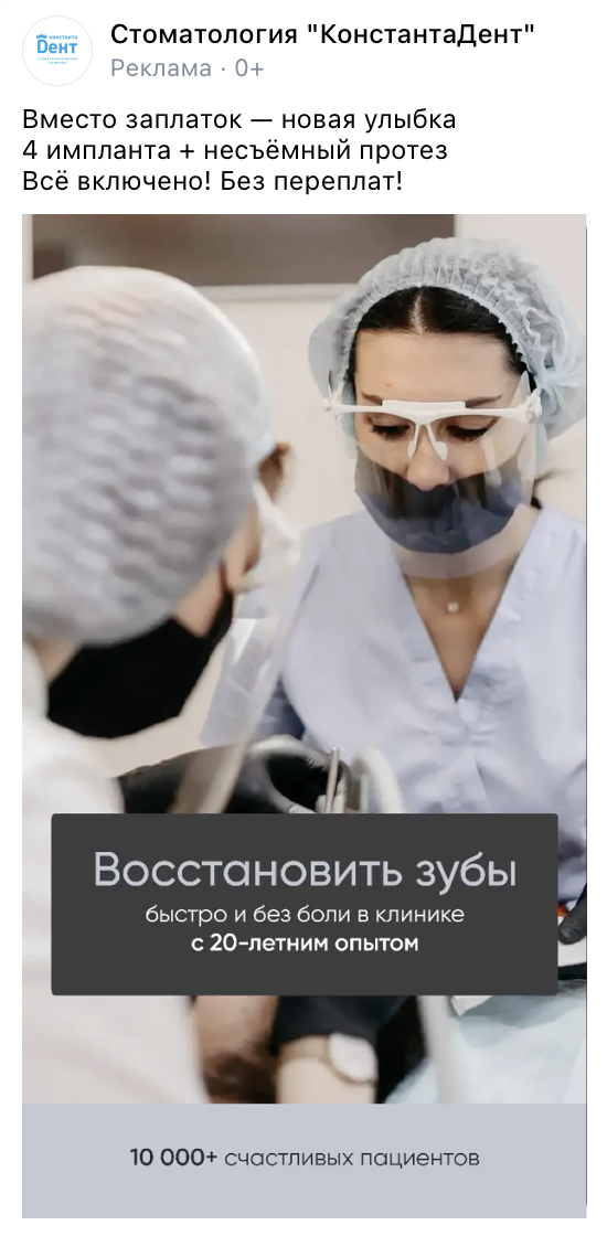 Продвижение стоматологической клиники в условиях высокой конкуренции при небольшом бюджете для этой ниши. Этот кейс демонстрирует, как реклама стоматологии в Новосибирске может окупиться в 18 раз. Задача продвижения стоматологических услуг Стоматологическая клиника в Новосибирске работает на рынке более 20 лет, врачи с сильным опытом, подход — индивидуальный и честный. Работают в среднем и ближе к премиум-сегменту. Запрос: "Нужен поток пациентов на имплантацию — как классическую, так и по системе All-on-4. Бюджет ограничен, контента почти нет, видео — вообще ноль". Имплантация зубов — услуга не из дешевых, и целевая аудитория (35–65 лет) не готова принимать решение быстро, долгий цикл сделки. Причины знакомы: дорого, страшно, потом как-нибудь. Наша задача в маркетинге — войти в контекст этих сомнений и показать, что "потом" означает жить с болью, неловкостью, комплексами и ограничениями. Услуги: одиночная имплантация, имплантация по системе All-on-4.