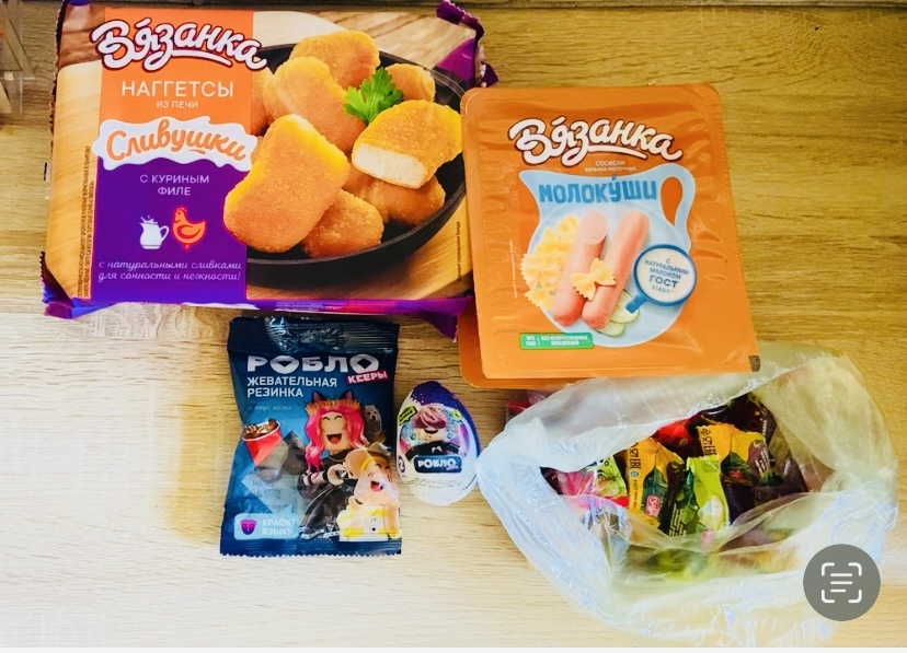 ПЯТЕРОЧКА 1.Яйцо шок. 89,99 2.Жев.резинка 69,99 3.Сосиски 370гр. 149,99. 2 шт. 4 Конфеты желейные 499,99. 0,240. 120р 5.Наггетсы Вязанка 250гр. 129,99. 2шт. ИТОГО:🧾839,94 СКИДКА: 679,96 РЫНОК 1.Кола 0,33. 70р 2.Соломка 30р 2шт. 3.Маршмеллоу 90гр. 45р ИТОГО:🧾175р. КРАСНОЕ&БЕЛОЕ 1.Раскраска 139р. 2шт. 2.Сок Мой 18р. 2 шт. ИТОГО:🧾314р ВОТ ТАКИЕ ПОКУПКИ У НАС СЕГОДНЯ 🙈 ХОРОШЕГО ВАМ ДНЯ ☀️🤗