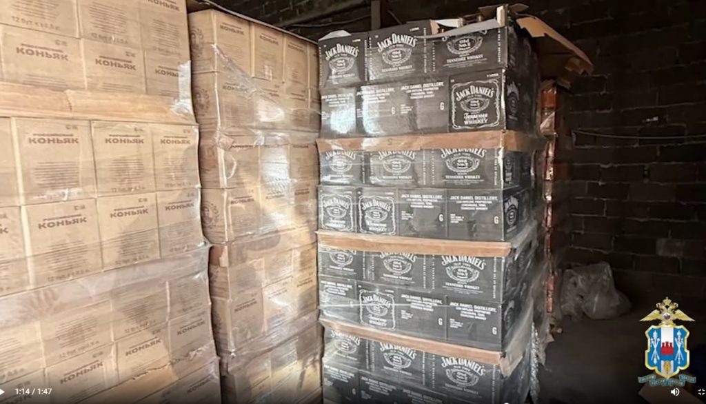 Донские полицейские ликвидировали в Новочеркасске подпольный цех по производству алкогольной продукции. В арендованном помещении спиртные напитки, приготовленные в больших емкостях, разливались по бутылкам с ярлыками известных брендов. Цех по производству горячительных напитков организовал 36-летний местный житель. Продукцию, не отвечающую требованиям ГОСТа, реализовывали под видом водки, виски и коньяка известных производителей. Для этого в цехе имелись пустые бутылки, пробки, наклейки, коробки с логотипами, этикетировочный станок. Готовый алкоголь загружали в машины и развозили на продажу. Внезапно нагрянув в подпольный цех, полицейские обнаружили там 430 литров готовых горячительных напитков, а также больше 3 тысяч литров этилового спирта стоимостью почти 450 тысяч рублей. В отношении мужчины возбуждено уголовное дело по статье 171.1 УК РФ. Максимальное наказание по статье – три года лишения свободы. Фото: скрин видео ГУ МВД России по Ростовской области