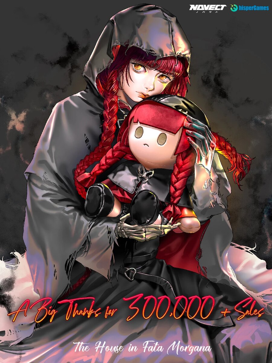Компания NOVECT объявила о том, что визуальная новелла The House in Fata Morgana была продана тиражом более 300 000 экземпляров на всех платформах. В честь этого события компания-разработчик и WhisperGames объявили о выпуске 30-сантиметрового плюша Морганы. Разработка прототипов и плюша длилась более года. Кроме того, он изготовлен из полиэфирного волокна, титановой стали и носимого капюшона. Предварительные заказы стартуют 16 мая 2025 года через в материковом Китае через официальный аккаунт RED (Xiaohongshu) и обойдется игрушка приблизительно в 4 800 рублей. Кроме того, в честь юбилея продаж была опубликована праздничная иллюстрация от Kanemune, изображающая Моргану с ее плюшем. Игра также получит в Steam скидку 15 мая 2025 года. The House in Fata Morgana — визуальная новелла 2012 года, рассказывающая историю духа, который просыпается в особняке без памяти. Однако в доме есть горничная, которая вместе с духом пытается восстановить его память. Для этого нужно исследовать прошлое особня