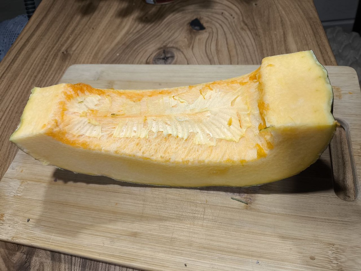Подходит к концу тыквенный бум у меня дома, нашла еще один великолепный вариант готовки этой полезнейшей вещи) Ингредиенты: 1) тыква 300гр 2) 2-3 яйца 3) сливочное масло 25гр 4) 1 ст.л сметаны 5) приправа хмели-сунели или иная 6) чеснок 3 зубчика 7) сыр 70гр 8) соль и перец по вкусу Отрезаем необходимый нам кусок от тыквы, ставим на огонь воду, чтобы можно было подварить нашу тыкву Очищаем и режем тыкву на средние кусочки Кидаем в кипящую воду минут на 5 Откидываем на сито, даем стечь воде Перекладываем тыкву в форму для запекания, добавляем чеснок, приправу, сметану, сливочное масло Перемешиваем и даем немного пропитаться В это время трем сыр Разбиваем в миску яйца (перемешиваем их как на омлет) Выливаем взбитые яйца в форму с тыквой и высыпаем сверху сыр Перемешиваем и ставим в разогретую до 180 градусов духовку минут на 30-40 Достаем, проверяем, что все готово Даем немного остыть и наслаждаемся :) великолепная, полезная и вкусная тыквенная запеканка у нас на столе Приятного аппетита
